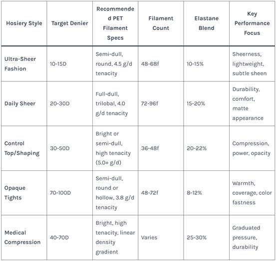 7. Technical Specifications Table: Recommended Polyester Filament Types by Hosiery Style